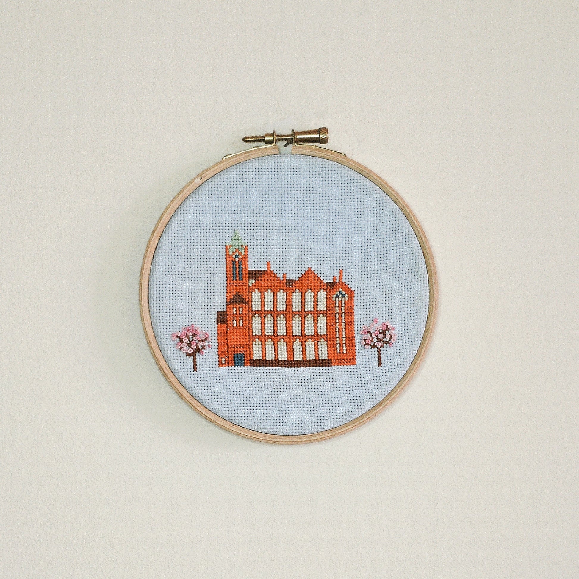 Celebrate craft and Birmingham with this beautiful cross-stich kit of The Ikon Gallery in Birmingham. The Ikon Gallery is a contemporary art venue located in Brindley Place in Birmingham.