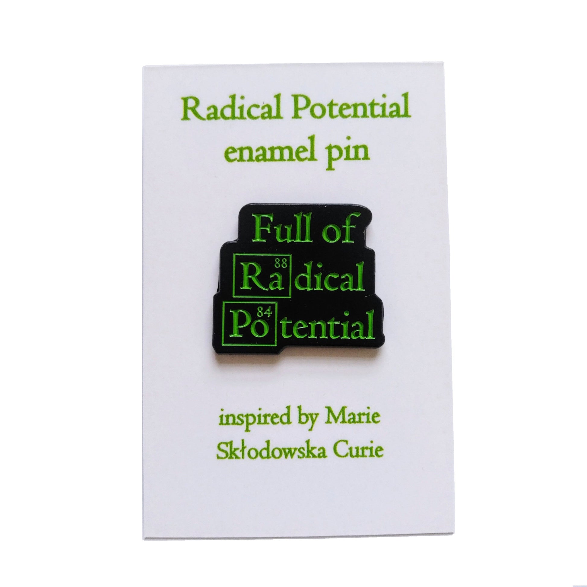 Why wear your heart on your sleeve when you can wear your superpower on your lapel? This design features Marie Curie's discovered elements of Radium and Polonium.[shortcode] [short-description]